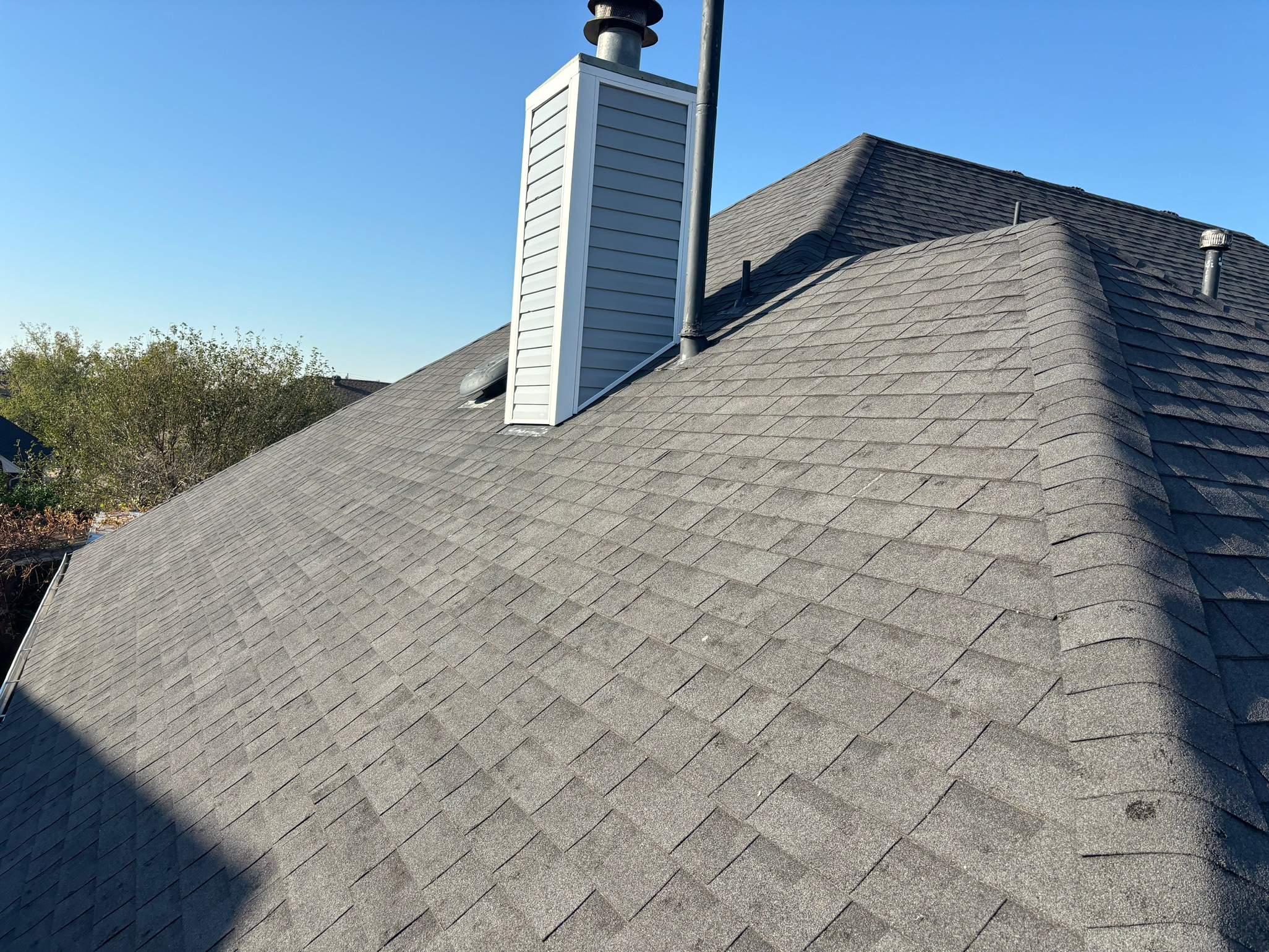 Most serious storm damage isn't visible from the ground. Bruised shingles, damaged shingle mat, gaps around vents and chimneys, and soft spots in your roof deck are all things a homeowner would never spot without a drone and climber inspection. By the time it shows up inside your home the damage is already done.